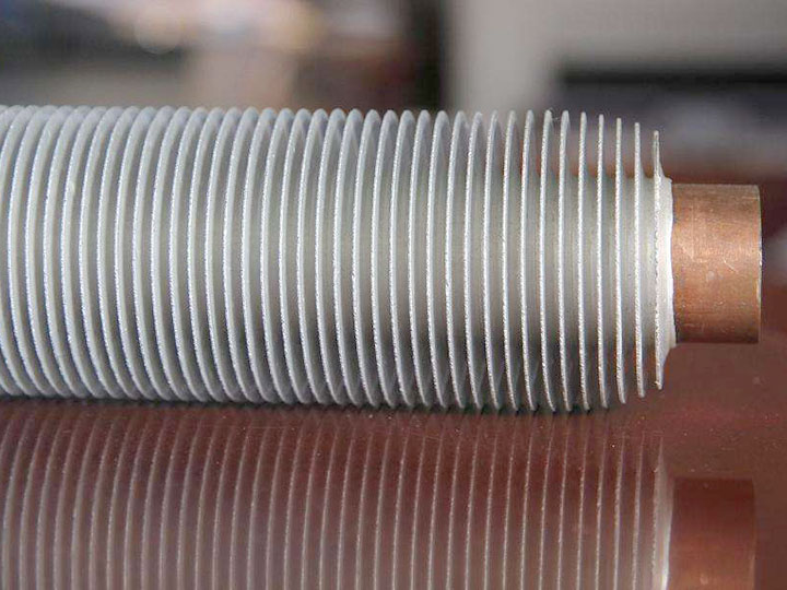 雙金屬復合翅片管是銅、鋁管(或鋼管、鋁管;或不銹鋼管、鋁管)經復全后再軋制出翅片,具有結合緊密、熱阻小、傳熱性能好、強度高、流動損失小、防腐蝕性能強、在長期冷熱工況下不晚變形、工作壽命長等優點。