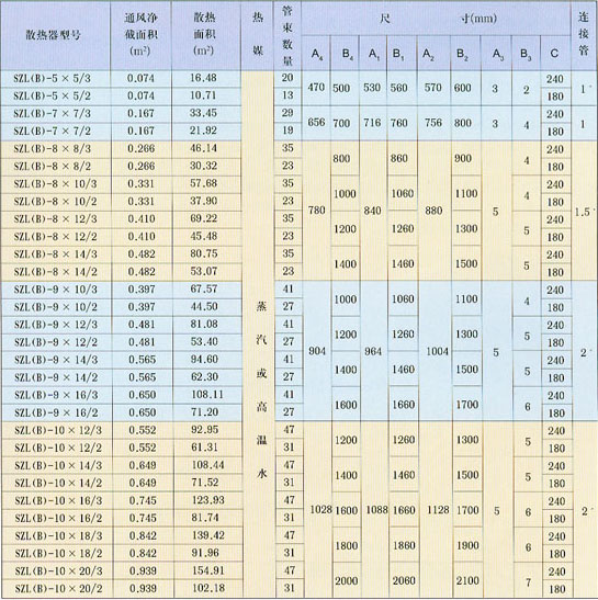 SZL(B)型空氣熱交換器(散熱器)基本參數表
