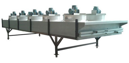 引風式空氣冷卻器是空冷器的一種制造工藝方式,指空氣先穿過管束再由風機葉片引出。它的優點是;風機和風筒置于管束之上,對管束有屏蔽保護作用,能減少雨;雪;冰雹;日曬的直接影響。同時,氣流穿過管束比較均勻,操作的穩定性好。此外由于風筒的抽力作用,風機停止運轉時仍能維持約40%的冷卻負荷。